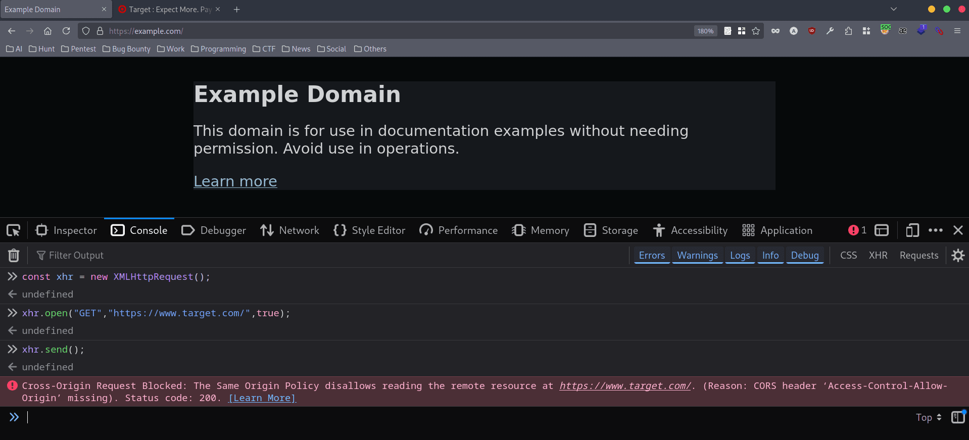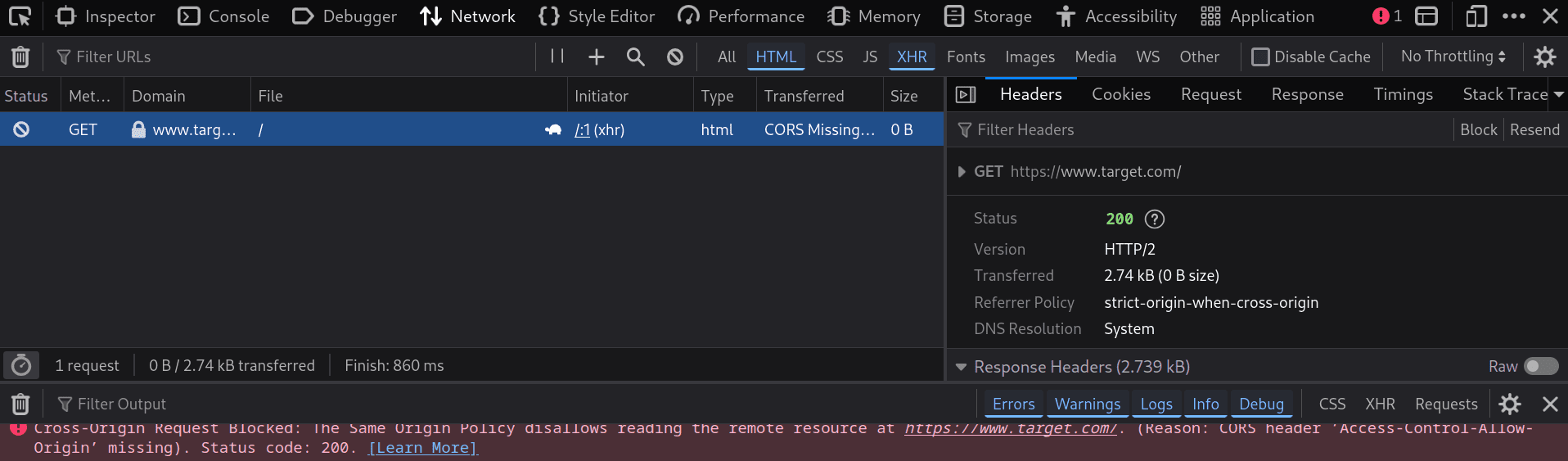 کاربر در حال تلاش برای ارسال XHR بهtarget.com است: