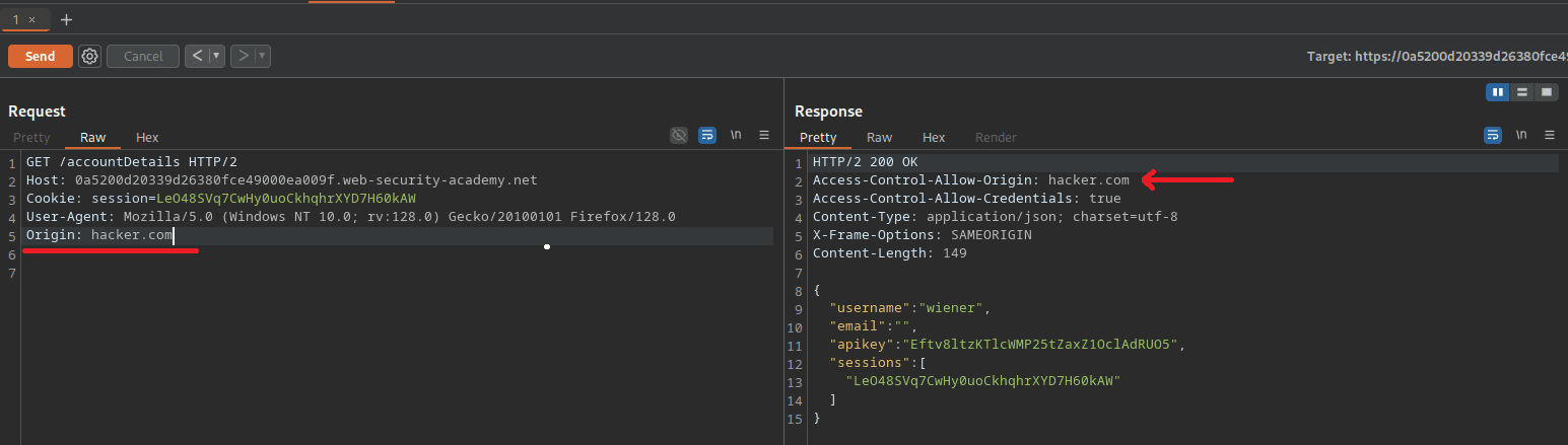 اگر در پاسخ سرور، هدرهای Access-Control-Allow-Origin و Access-Control-Allow-Credentials وجود داشته باشند و مقدار Origin مهاجم در HTTP Response برگردد ، میتوان نتیجه گرفت که پیکربندی CORS بهدرستی انجام نشده است.