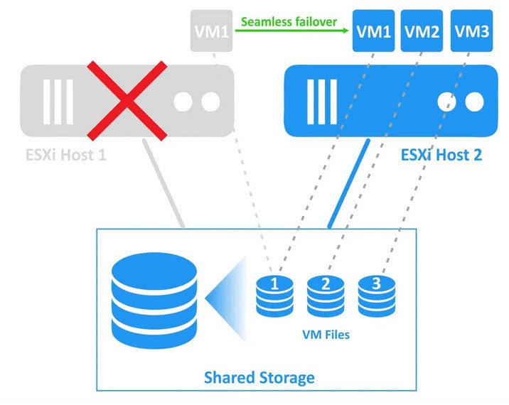 VMware HA مکانیزمی است که با مانیتورینگ هاستها و ماشینهای مجازی، در صورت خرابی یا قطع ارتباط، VM را به صورت خودکار روی هاست سالم دیگر ریاستارت میکند.